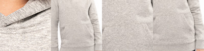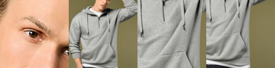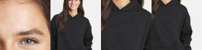 80% ringspun cotton/20% polyester.* Cotton faced fabric.Brushed back fleece.Drop shoulder style.Relaxed fit.Double fabric hood with no drawcord.No front pocket.Slightly cropped length.Ribbed cuffs and hem with side vents.Twin needle stitching.Tear out label.