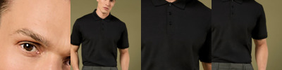 100% ringspun combed cotton.* Slim fit.1x1 ribbed collar and cuffs.Taped neck.Four self colour button placket.Side vents.Twin needle stitching.