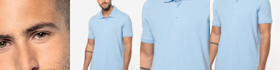 65% polyester/35% cotton. Regular fit.1x1 ribbed flat knit collar and cuffs.Taped neck, inner collar and shoulder seams.Three button slanted placket.Single stitch shoulders and armholes.Twin needle hem.Tear out label.Superwash® 60°C.