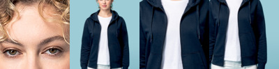 85% organic combed cotton/15% recycled polyester. Enzyme washed.Soft cotton faced fabric.Three yarn low shrinkage fleece.Brushed back fleece.Drop shoulder style.Straight fit.Jersey lined hood with self colour drawcord.Jersey taped neck.Half moon back yoke.Full length zip.Front pouch pockets.1x1 ribbed cuffs and hem.Twin needle stitching.Unbranded size label.