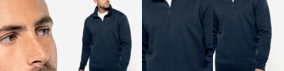 80% cotton/20% polyester. Soft cotton faced fabric.Three yarn low shrinkage fleece.Brushed back fleece.Drop shoulder style.Zip neck with self colour plastic zip pull.Taped neck.Ribbed cuffs and hem.