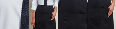 65% recycled polyester/35% cotton. Apron body with straps sold separately for dual colour branding (PR191).Easy care fabric.Self fabric cloth holder.Front pocket.Fitted with snap-action press studs to secure straps in place.Width 70cm.Length 86cm.Domestic wash at 60°C.