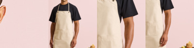 60% cotton/40% recycled polyester CVC. Easy care fabric.Heavyweight canvas material.Eyelet detail for adjustable knotted neckband.Double front pocket.Eyelets with rounded corners.Self fabric 90cm ties.Width 72cm.Length 86cm.Can be worn as a full bib or half waist apron.Domestic wash 40°C.