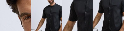 65% recycled polyester/35% cotton twill. Lightweight.Modern fit.Mandarin collar stand.Contrast neck tape.Press stud closure.Left sleeve pen pocket.Left chest pocket.Domestic wash 60°C.