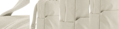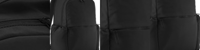100% recycled T400D polyester. Carry handles.Main zip compartment with two way zip.Front zip pocket.Side pockets with drawcord adjuster.Laptop compartment, compatible up to 16".Internal zip and slip pockets.Tear out label.Capacity 21 litres.
