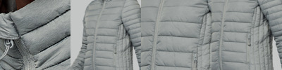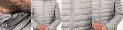 Polyamide outer.* Polyester padding.Contrast polyamide lining.Warm and ultra-lightweight.Full length low profile zip with chin guard and inner zip guard.Two front zip pockets.Bound cuffs and hem.Packs away into storage bag.
