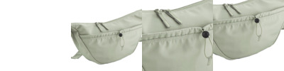 100% recycled T400D polyester. Carry handles.Main zip compartment with two way zip.Front zip pocket.Side pockets with drawcord adjuster.Tear out label.Capacity 33 litres.