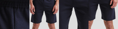 90% polyester/10% elastane. 88% polyester interlock/12% elastane under shorts. Four-way stretch microfibre short. Integrated under short with wicking properties. Elasticated waistband with inner drawcord. Two side zip pockets. Concealed media pocket on under short. Side vents. Tear out label.