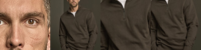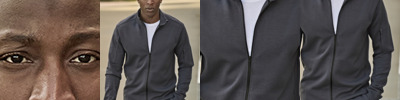 80% ringspun cotton/20% polyester. Interlock knit.Unbrushed.Set in sleeves.Ribbed collar, cuffs and hem with elastane.Herringbone taped neck.SBS zip neck.Machine washable.
