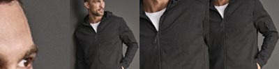 100% polyester. Modern unisex style.Unlined.Collar high full length zip.Bound armholes.Two front zip pockets.Drawcord hem.Twin needle stitching.60°C wash.