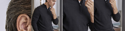 50% merino wool/50% polyacrylic. Tailored fit.Fully fashioned.Set in sleeves.SBS zip neck.Ribbed cuffs and hem.Machine washable.