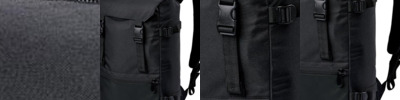 600D polyester. Waterproof fabric.Grab handle.Ergonomic, adjustable padded shoulder straps.Lid with zip pocket and adjustable buckle closure.Main compartment with drawcord closure.Laptop compatible up to 17".Compression straps.Front zip pocket.Access for decoration.Capacity 17 litres.