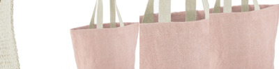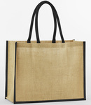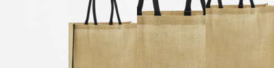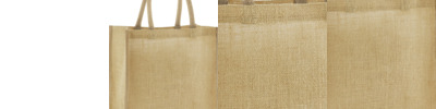 Unlaminated starched jute. Cotton carry handles (55cm long).Cut out label.Capacity 21 litres.
