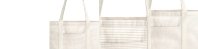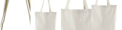 100% organic cotton. Dyed yarn. Striped design. Carry/shoulder straps (67cm long). Cut out label. Capacity 10 litres.