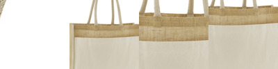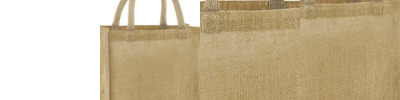 Unlaminated starched jute. Cotton carry handles (40cm long).Cut out label.Capacity 14 litres.