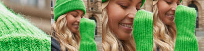 67% recycled polyester/21% nylon/10% acrylic/2% elastane. Luxury soft touch yarn.One piece knit.Tear out label.