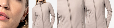 Two layer soft shell. Mechanical stretch polyester outer layer, made from at least 50% recycled fabric.Contrast warm polyester fleece backed.Showerproof and windproof.Grown on hood with adjustable toggles.Full length contrast zip with chin guard and inner zip guard.Inner pocket.Contrast right chest zip pockets.Two contrast front zip pockets.Open cuffs and hem.Cut out label.
