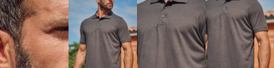 65% polyester/35% combed cotton. Piqué knit.Anti-bacterial and anti-piling treatment.Ribbed collar and cuffs.Taped neck.Three self colour button placket.Taped side vents.Twin needle hem.60°C wash.