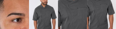 65% polyester/35% cotton. Unisex styling. Mandarin collar stand. StayCool® panel on centre back and inner collar. Hanging loop. Asymmetric front with concealed zip closure. Left sleeve double pen pocket with rivets. Right chest double pocket with metal rivets. Contrast twin needle stitching. 60°C wash. Branded tab on left sleeve.