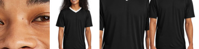 Top off your game with this Competitor United V-neck that features moisture wicking and sun protection. 3.8-ounce, 100% poly interlock with PosiCharge ® technology UPF rating of 30+ Tear-away label Athletic V-neck Contrast colorblocking at neck and side