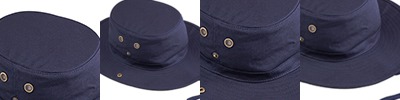 100% heavy cotton canvas; Fine mesh brass eyelets; Side snaps to wear brim up or down; Cotton chin strap with adjustable cord lock; Floatable: EVA foam insert; 2 1/2" brim;