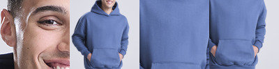 70% ringspun cotton/20% polyester/10% recycled polyester.* Cotton faced fabric. Brushed back fleece. Drop shoulder style. Oversized fit. Three panel double fabric hood. Front pouch pocket with inner media pocket. Ribbed cuffs and hem. Twin needle stitching. Tear out label.
