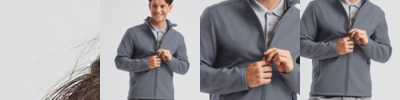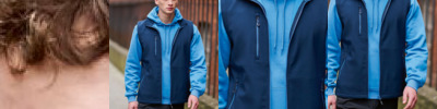 Fabric Information Warm backed woven stretch Softshell fabric Wind & Water Repellent Fabric Special Features Stretch binding to armholes, hem and collar 2 zipped lower & 2 zipped chest pockets, with inner zip guard Made using recycled materials