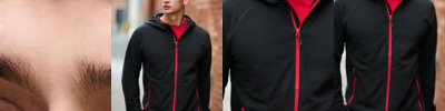 Fabric Information 100% polyester mini grid fleece made from 30% recycled materials Special Features Grown on hood with stretch binding Stretch binding to cuffs and hem Contrast zip detail with 2 lower zipped pockets Made using recycled materials