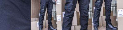 Isotex® 10000 recycled polyester stretch outer. Recycled polyester lining.Conforms to EN343: 2003 A1: 2007 class 3:2.Waterproof with taped seams.Breathable.Part elasticated waistband with belt loops.Zip fly with stud over.Two waterproof side zip pockets.Left thigh waterproof zip pocket.Rear patch pocket with flap.Articulated knee design.Reflective print detail.