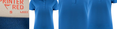 - Shaped ladies piqué shirt with side vents, flat knit collar and three buttons at front placket.
