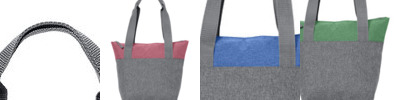 - Two-tone striped, webbing handles with hook and loop wrap
