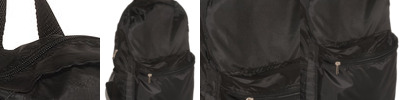 - Dual-zippered main pocket, zippered front pocket, and adjustable shoulder straps