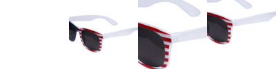 - Patriotic sunglasses featuring American stars and stripes design on front of frames