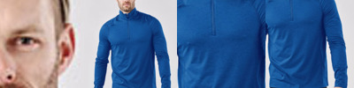 46% recycled polyester/45% polyester/9% elastane. H2X-DRY® moisture management fabric. UPF rating 50+. Four-way stretch. Low profile zip neck with chin guard. Articulated action shoulders. Contoured side panels. Flatlock stitched seams.