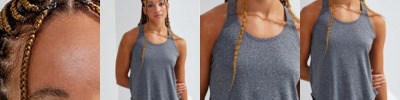 Soft touch fabric. Contrast double strap on back. Open back. Slight hi-lo hem. Twin needle stitch on hem, neck and arm holes. Slight stretch. We recommend using block out vinyl and inks.Product contains no branded neck or waist label. Removable Kimble or looped garment tags. Inner seam label holds important product information on one label with a second label containing brand information which can be cut-away.