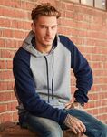 NuBlend® pill-resistant 2-end fleece Made with sustainably-sourced, USA-grown cotton High stitch density for a smooth printing canvas Color-block styling provides a fresh approach to an athletic style Raglan sleeves for ease of movement 2-ply lined hood with grommets Single-needle topstitch on front neck Contrast hood lining, neck tape trim, flat woven drawcord and sleeves Front pouch pocket Two-needle cover stitching on armholes and waistband 1x1 rib cuffs and waistband