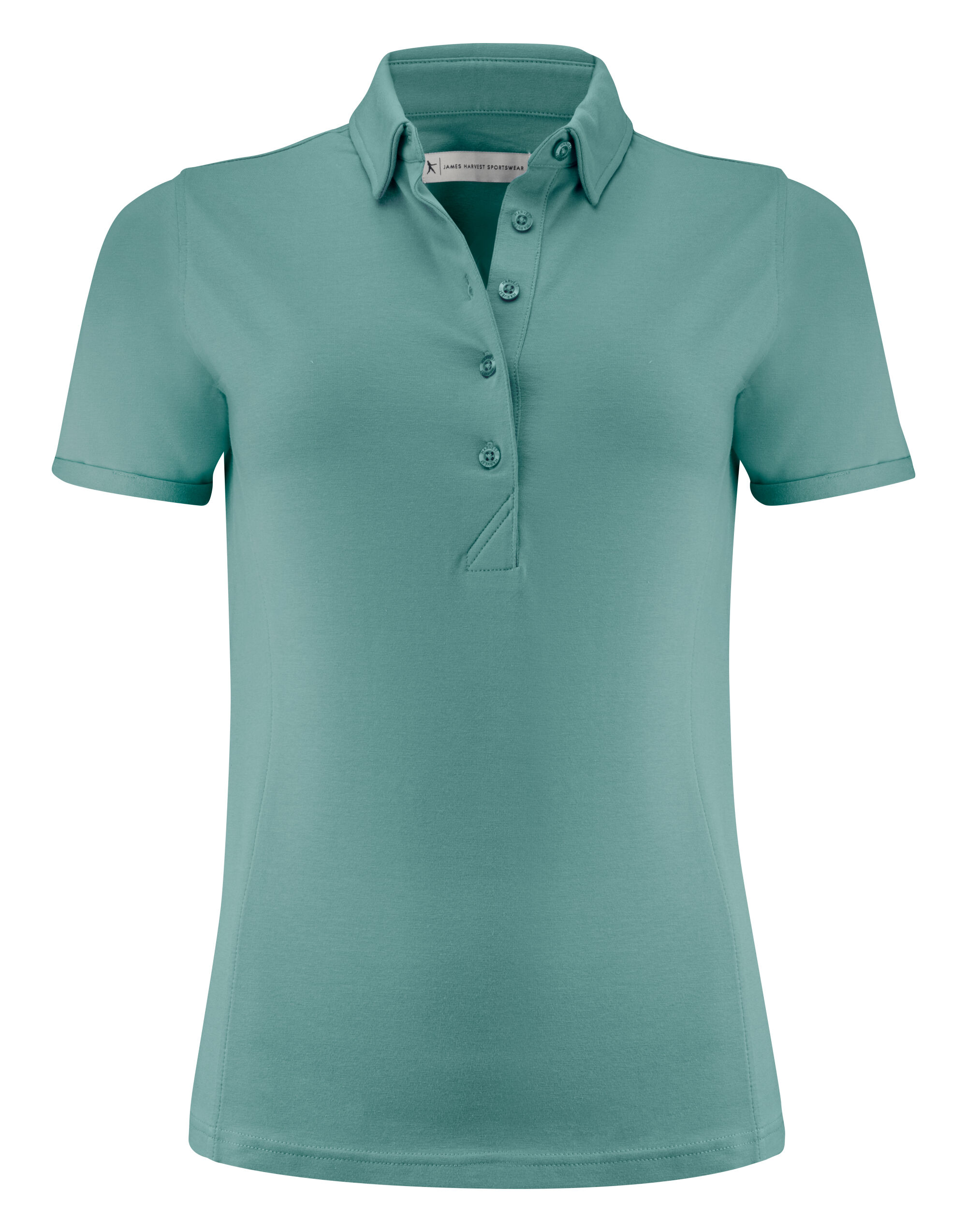 Stretch polo in single jersey with a hidden button down collar The polo has folded cuffs at the sleeves for a modern look Side panels and back yoke Tone on tone buttons Delivered in a biobased, compostable bag Normal machine wash at 40 degrees Do not tumble Ironing: Highest temperature allowed - 150 degrees Also available in mens sizes code HAR2135039