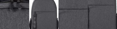 • Front zippered pocket backed by another vertical zippered pocket for smaller essentials