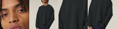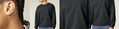 Set-in sleeves. 2x1 rib at collar, sleeve cuffs and bottom hem. Double-needle topstitches on all seams. Inside herringbone back neck tape. Self-fabric half moon at the back neck. Slight shading on the seams to give a washed look. Garment-dyed product: each garment may vary in appearance and colour may bleed (follow our care label). Carefully read printing recommendations.