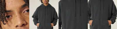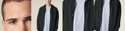 Set-in sleeves. Self-fabric lined hood. Covered metal zip at centre front. Round drawcords in matching body colour with closed metal tipping. Metal eyeletss. 1x1 rib at sleeve cuffs and bottom hem. Kangaroo pocket. Double-needle topstitches at the armhole, sleeve cuffs and bottom hem. Herringbone tape at the inside back neck seam and inside of the zip. Self-fabric half moon at back neck.