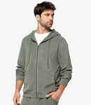 80% organic combed cotton/20% recycled polyester. Towelling fabric. Enzyme washed. Drop shoulder style. Straight fit. Three panel lined hood with self colour drawcord. Herringbone taped neck. Reinforced shoulders. Full length zip. Half moon back yoke. Two front pockets. 1x1 ribbed cuffs and hem. Tag free. Recycled polyester is made from post-consumer waste. Special Order items are non-stock Items ordered from the supplier. These items are non-returnable, and lead times may vary.