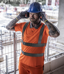 Two layer soft shell. Warm backed polyester soft shell outer layer, made from at least 50% recycled polyester.Conforms to EN ISO 20471: 2013 + A1: 2016 class 3.RIS-3279-TOM (orange only).Showerproof.Full length contrast zip.Two angled ID reflective tape bands around the body, sleeves and one on each shoulder.Two front zip pockets.Open cuffs and hem.Branded tab on lower left side seam.