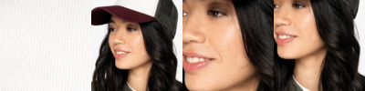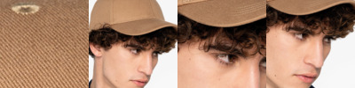100% organic cotton twill. Recycled polyester mesh rear panels. 5 panel. Structured front panel. Pre-curved peak. Recycled plastic snapback size adjuster. Tag free.