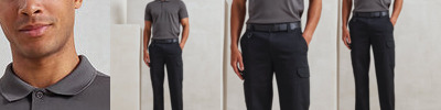 Durable work cargo trousers with Premier's Stretchchecker fabric for stretch and a comfortable fit. Belt loops and two-button fastening to the waistband. Covered YKK zip fly. Side sling pockets. Multiple mobile friendly, cargo-style pockets with hook and loop fastening. Single patch pocket to the reverse. Two leg lengths. Unisex styling. Contains certified recycled polyester.