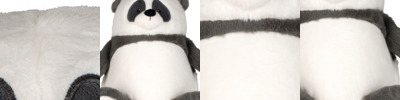 100% polyester. Soft plush grey/white panda.Sewn eyes.Contrast nose.Removable inner pad.Zip access for decoration onto front panel.Suitable for embroidery, vinyl print and sublimation.