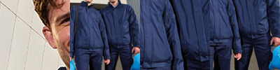 Polyester outer with PVC coating. Micro fleece lining. Padded. Waterproof 5000mm with taped seams. Conforms to EN343 class 1.1. Concealed adjustable hood. Collar high full length zip with tear release storm flap. Inner patch pocket. Two front fleece lined zip pockets. Tear release adjustable cuffs. Part elasticated hem. Concealed zip access for decoration.