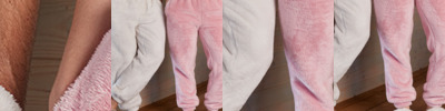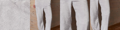 100% polyester. Teddy fleece fabric. Elasticated waistband. Two side pockets. Elasticated cuffed leg ends. Tear out label. Co-ordinates with BH201 and BH202.