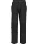 65% recycled polyester/35% cotton kingsmill fabric. UPF rating 40+. Part elasticated waistband with belt loops. Zip fly with button over. Two side pockets. Holster pockets. Two rear patch pockets. Media pocket. Left leg cargo pocket. Right leg hammer loop and ruler pocket. Stretch panelling in key movement areas. Top loading knee pad pockets. Knee pads available PW102.