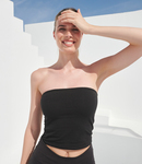 93% cotton/7% elastane. Single jersey. Strapless. Double layer front. Silicone grip tape on front. Twin needle hem. Tag free.