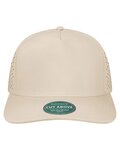 100% recycled polyester fleece. Recycled ripstop nylon front panel and peak.5 panel.Stitched ventilation eyelets.Flat peak.Adjustable webbing and clip closure.Tear out label.